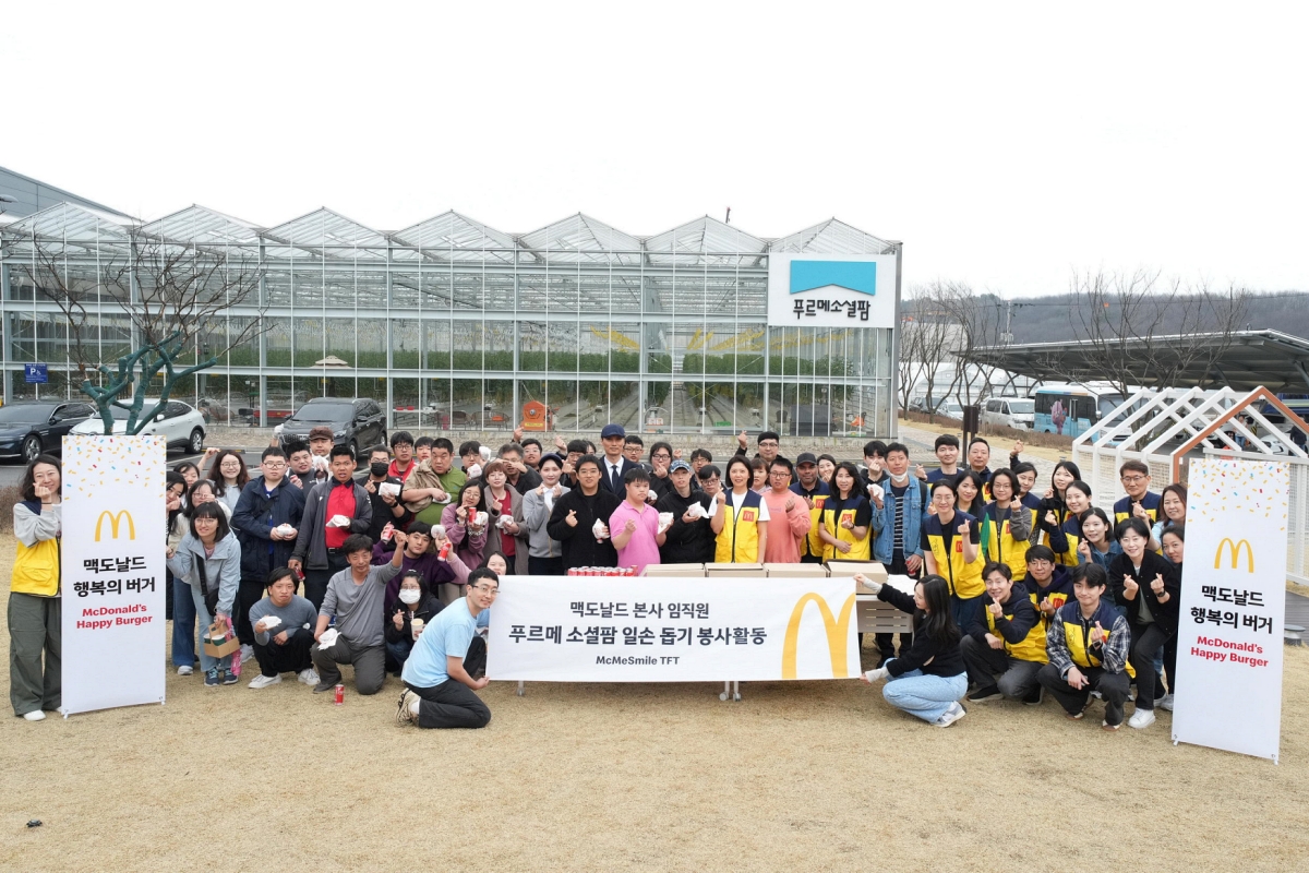 (2025년 3월 31일) ---- 한국맥도날드는 창립기념일을 기념해 본사 임직원들이 발달장애 청년들의 자립을 돕는 스마트 농장 ‘푸르메소셜팜’에서