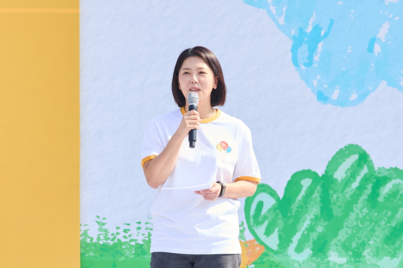 서울 월드컵공원 평화광장에서 열린 ‘2025 맥도날드 해피워크’의 시작을 알리는 환영사를 하고 있다